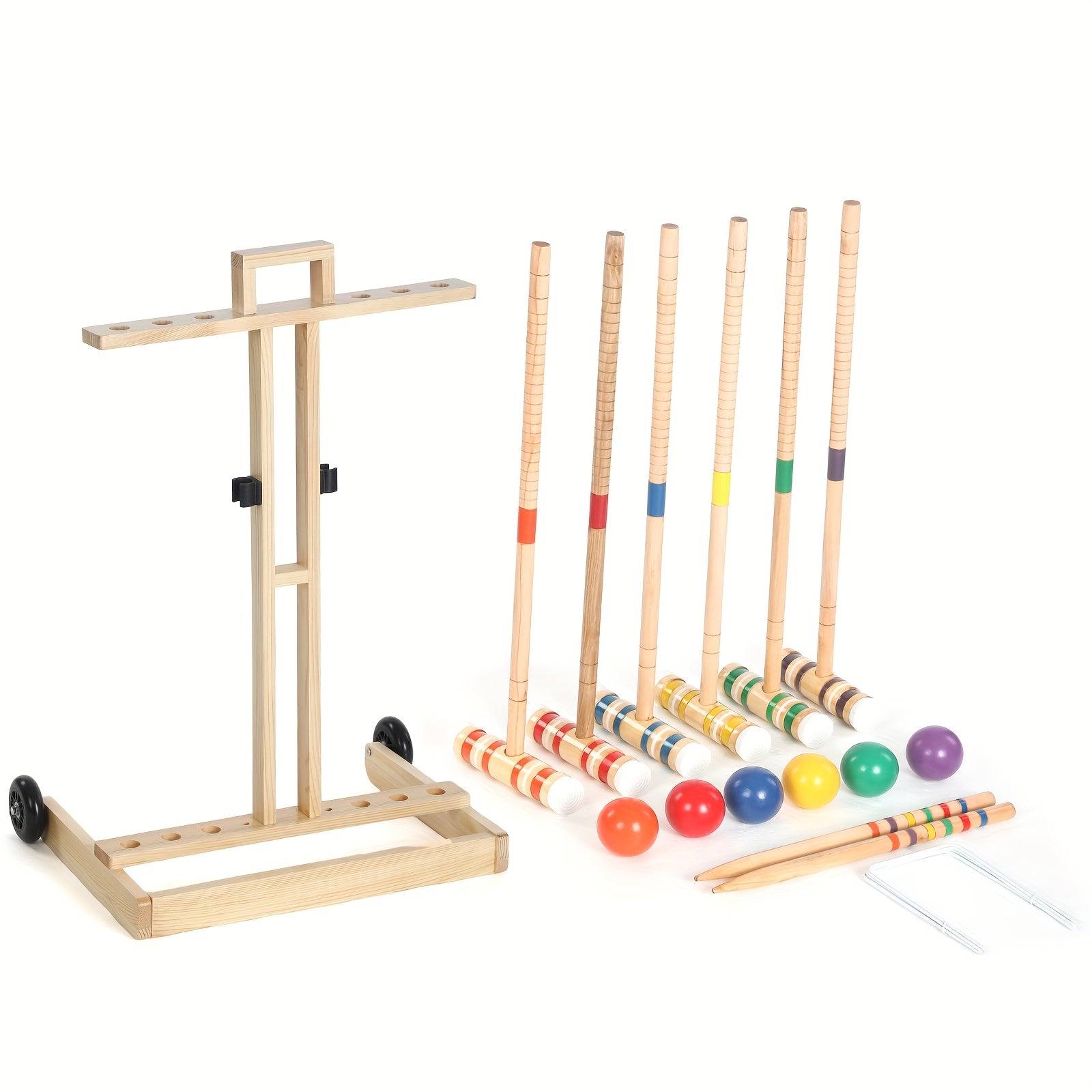 6 Player Croquet Set For Adults And Kids Croquet Lawn Game Kit With Wooden Stand For Backyard Lawn Yard Outdoor Games