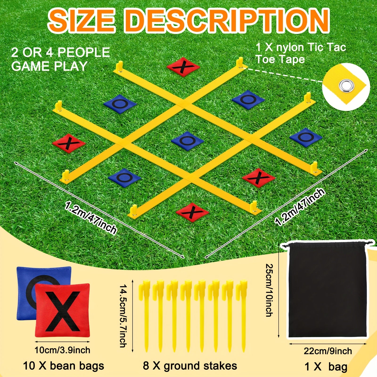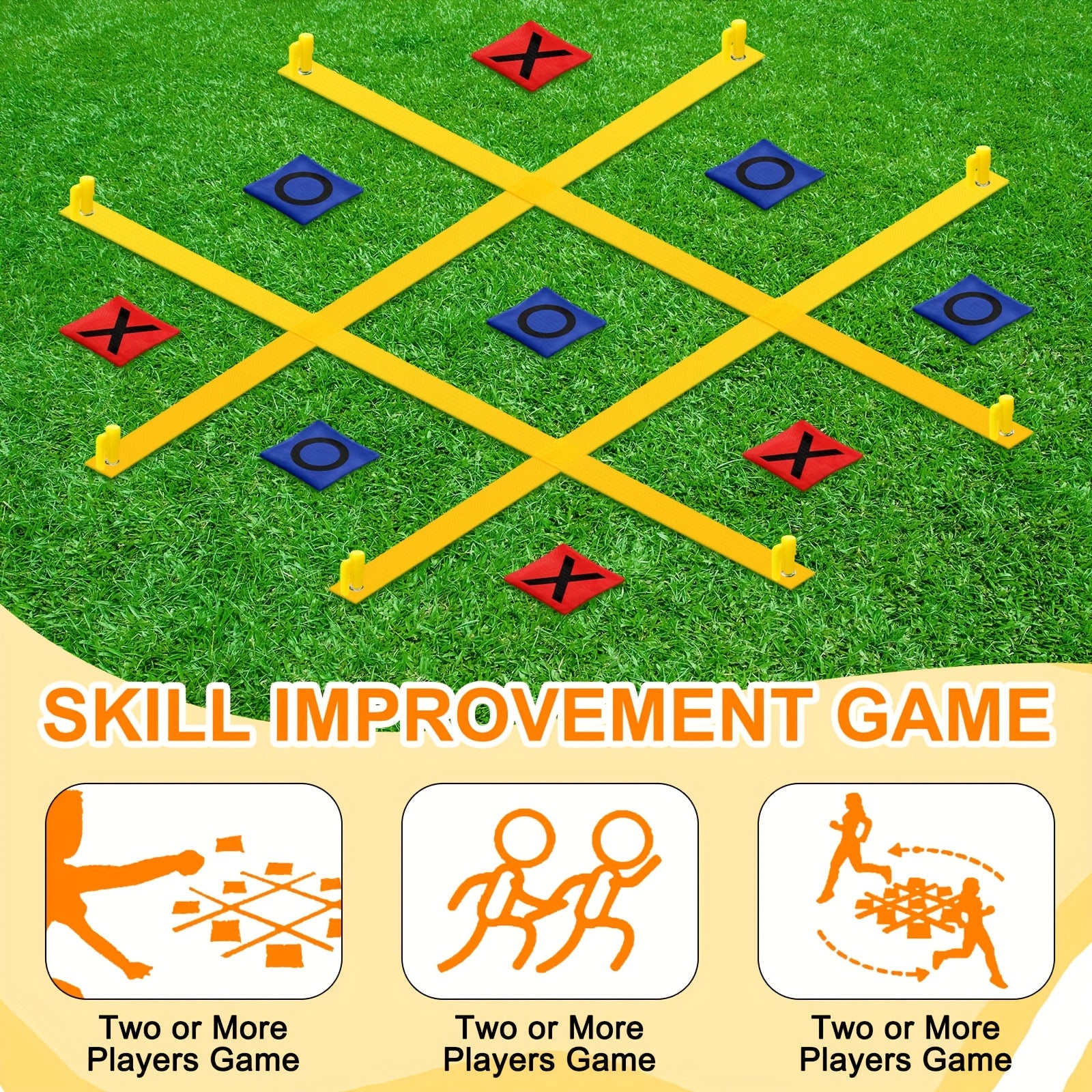 71pcs Carnival Games Set 4ft X 4ft Giant Tic Tac Toe Strap Game, Soft Plastic Cones Bean Bags Ring Toss Game, Hopscotch Ring Game for Birthday Party Outdoor Games Supplies Combo Set