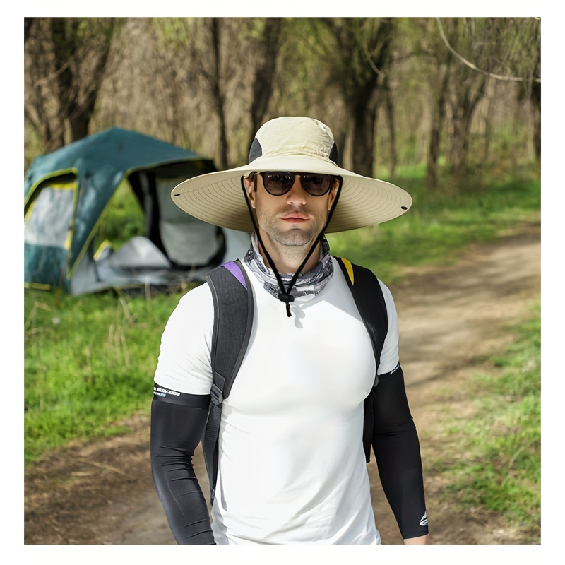 Men's Fashionable Wide Brim Hat - Adjustable Fit, Breathable Fabric, Suitable for Outdoor Vacation, Fishing Trips, and Summer Beach Hats