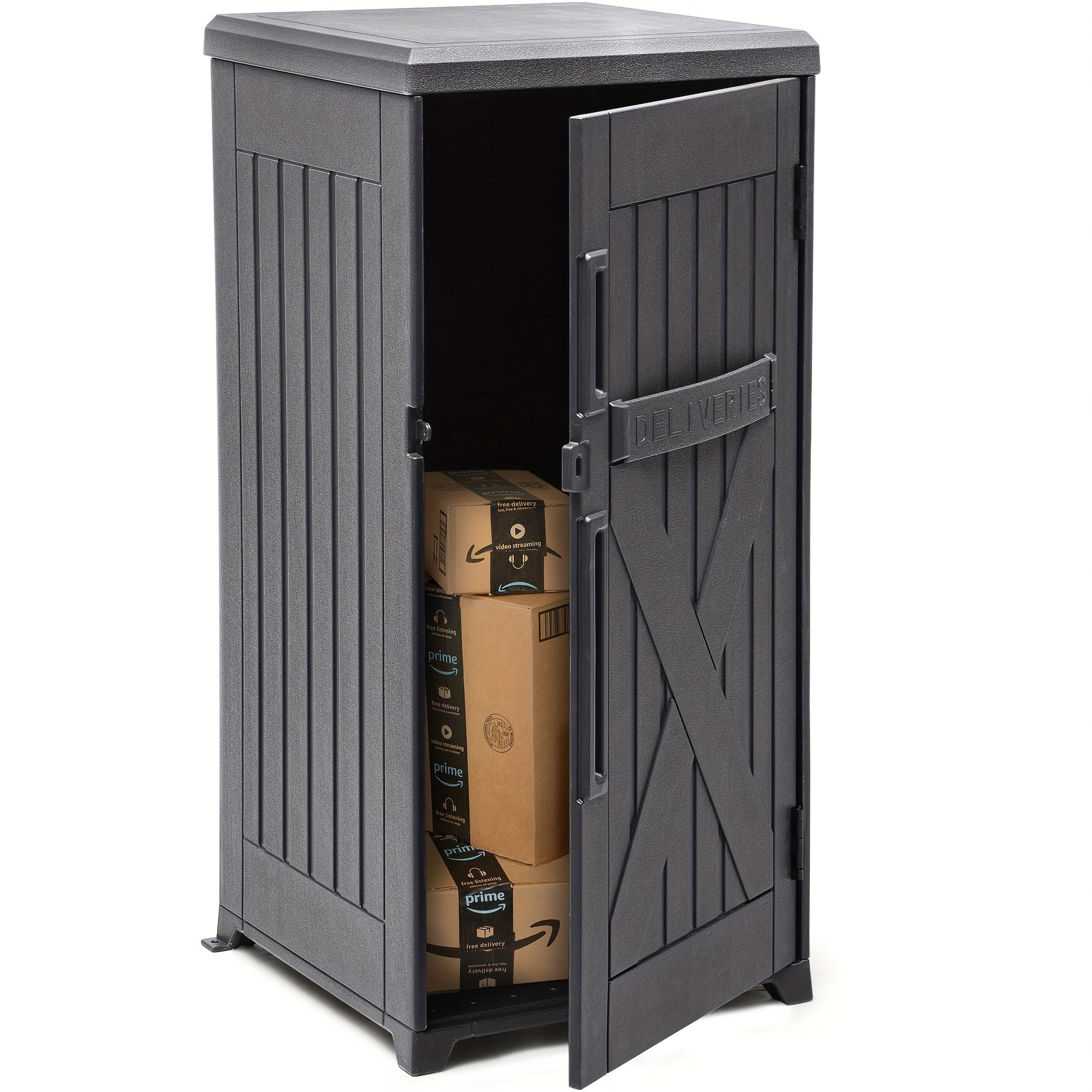 Outdoor Horizontal Storage Sheds w/o Shelf, Weather Resistant Resin Tool Shed, Multi-Opening Door for Storage of Bike, Trash Cans, Garden Tools, 35 cu ft, Waterproof, Lockable, Dark Gray