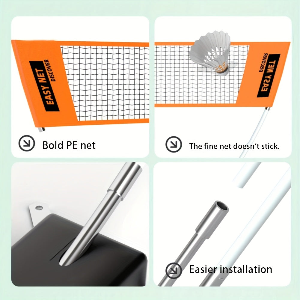Portable Badminton Net with Carry Bag - Foldable Nylon Sports Net for Tennis, Volleyball & Badminton, Easy Setup & Storage, Orange & Black Design for Home Use